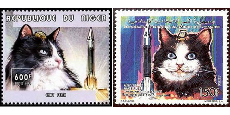 O primeiro selo com a figura de um gato surgiu na Espanha em 1930. Porém, o gato não era a figura principal, e sim o avião de Charles Lindbergh. O primeiro selo com o gato como principal figura, foi produzido na Polônia em 1964. O primeiro selo brasileiro com a figura de um gato, foi lançado em 1993, e o gato era o Mingau, da turma da Mônica.