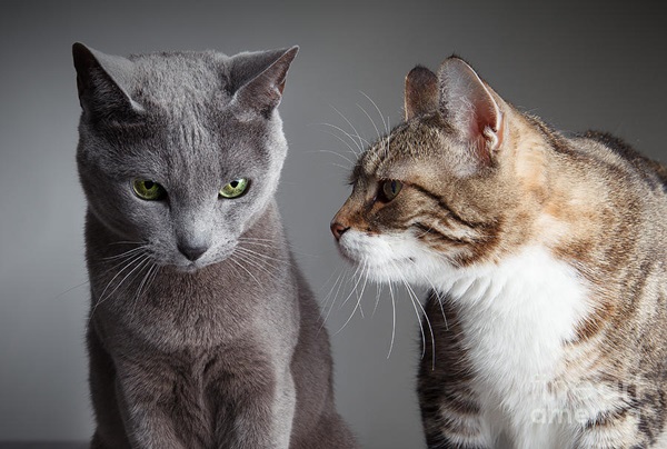 Orelhas para trás e niveladas contra a cabeça sinalizam que o gato está com medo e se encontra em posição de defesa.