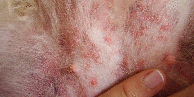 Atopia canina é uma doença dermatológica causada por uma hipersensibilidade hereditária a alergenos inaláveis (poluição, pólen, mofo, ácaros, etc).
