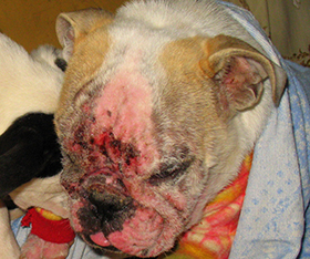 Atopia canina é uma doença dermatológica causada por uma hipersensibilidade hereditária a alergenos inaláveis (poluição, pólen, mofo, ácaros, etc).